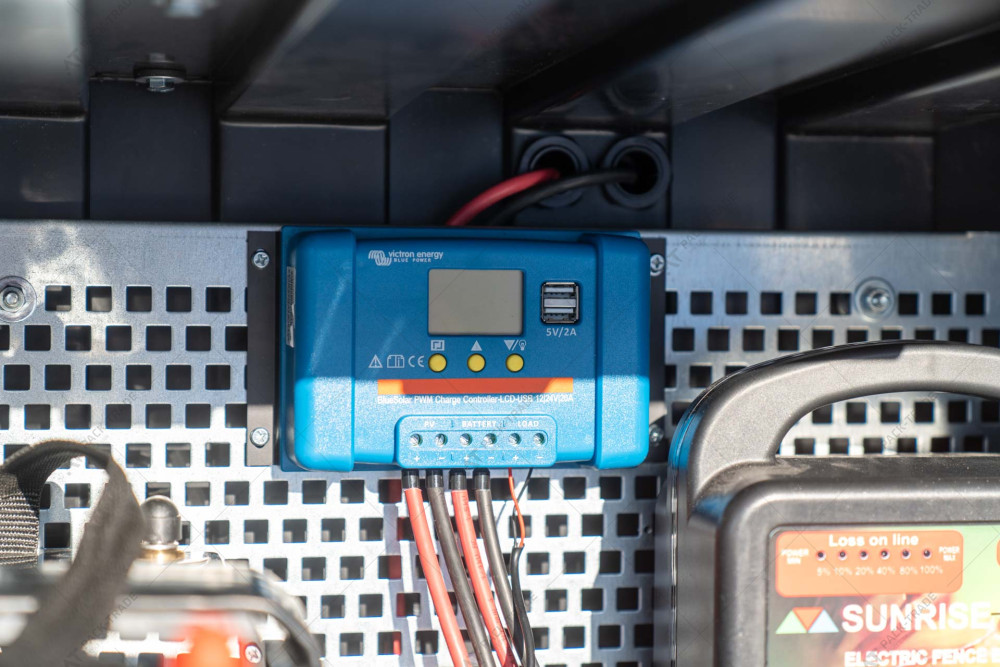 Solar panel electric fence — an autonomous solution for reliable fencing. The set includes: an energizer, a battery, a solar panel, a charge/discharge controller, and a grounding rod, all housed in a durable, waterproof plastic case. The box is practical and easy to use, designed with your operational needs in mind.