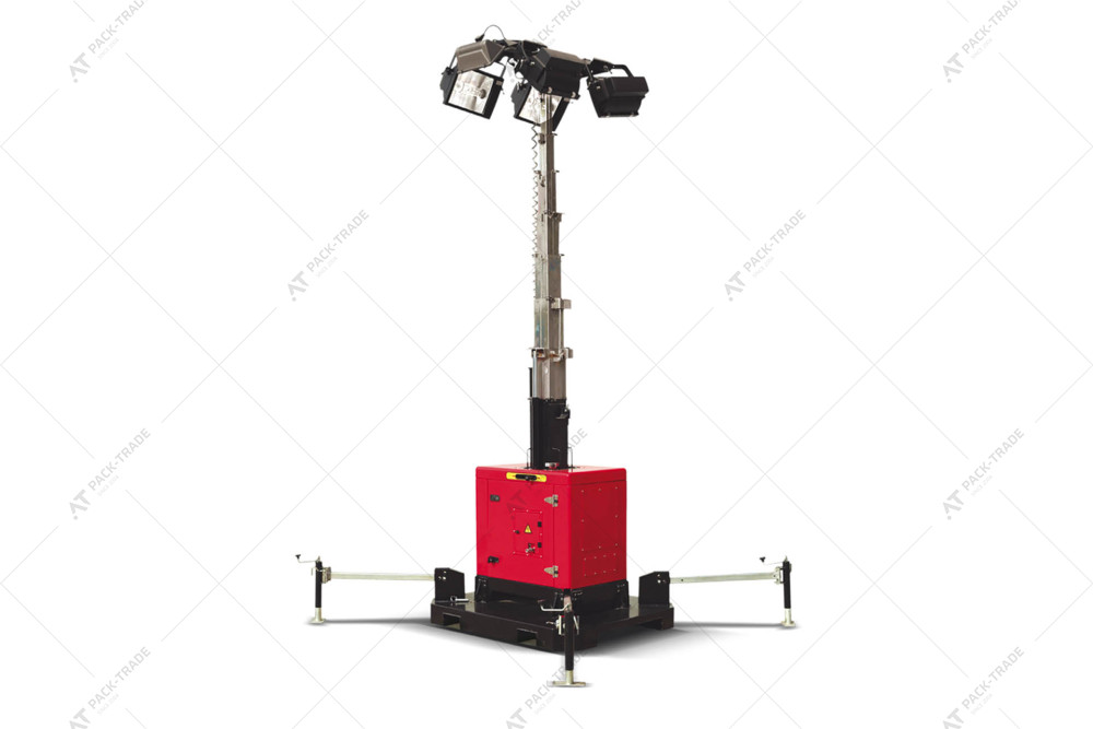 Lighting tower HIMOINSA Mini Kit is a compact and effective solution for lighting construction sites, industrial areas, and temporary facilities. The model operates in the 50/60 Hz frequency range and is equipped with a hydraulic mast lifting system. The maximum lifting height is 9 meters. The mast can be rotated manually through 360°, allowing for flexible adjustment of the lighting direction. The lighting module consists of four metal halide lamps, each with 100,000 lumens, with the option of installing an additional 33,000-lumen halogen lamp. The total luminous flux can reach 433,000 lm. The tower design ensures stability and reliability even in difficult operating conditions.