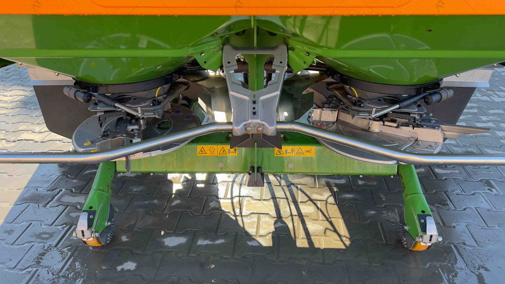 Двухдисковая система распределения гарантирует стабильную ширину захвата и равномерное распределение удобрений по всей рабочей зоне. Конструкция агрегата выполнена из высококачественных материалов, устойчивых к коррозии и механическому износу, что позволяет использовать разбрасыватель в сложных полевых условиях.