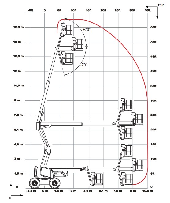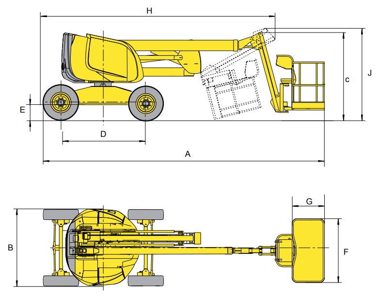 Самохідний дизельний колінчатий підіймач Haulotte HA18PX — потужна універсальна підйомна платформа для складних висотних робіт на відкритих і пересічних майданчиках. Завдяки 4×4 повному приводу, 360° обертанню та відмінній прохідності, ця модель легко долає нерівності й підйоми, забезпечуючи точне позиціювання платформи навіть навколо перешкод.